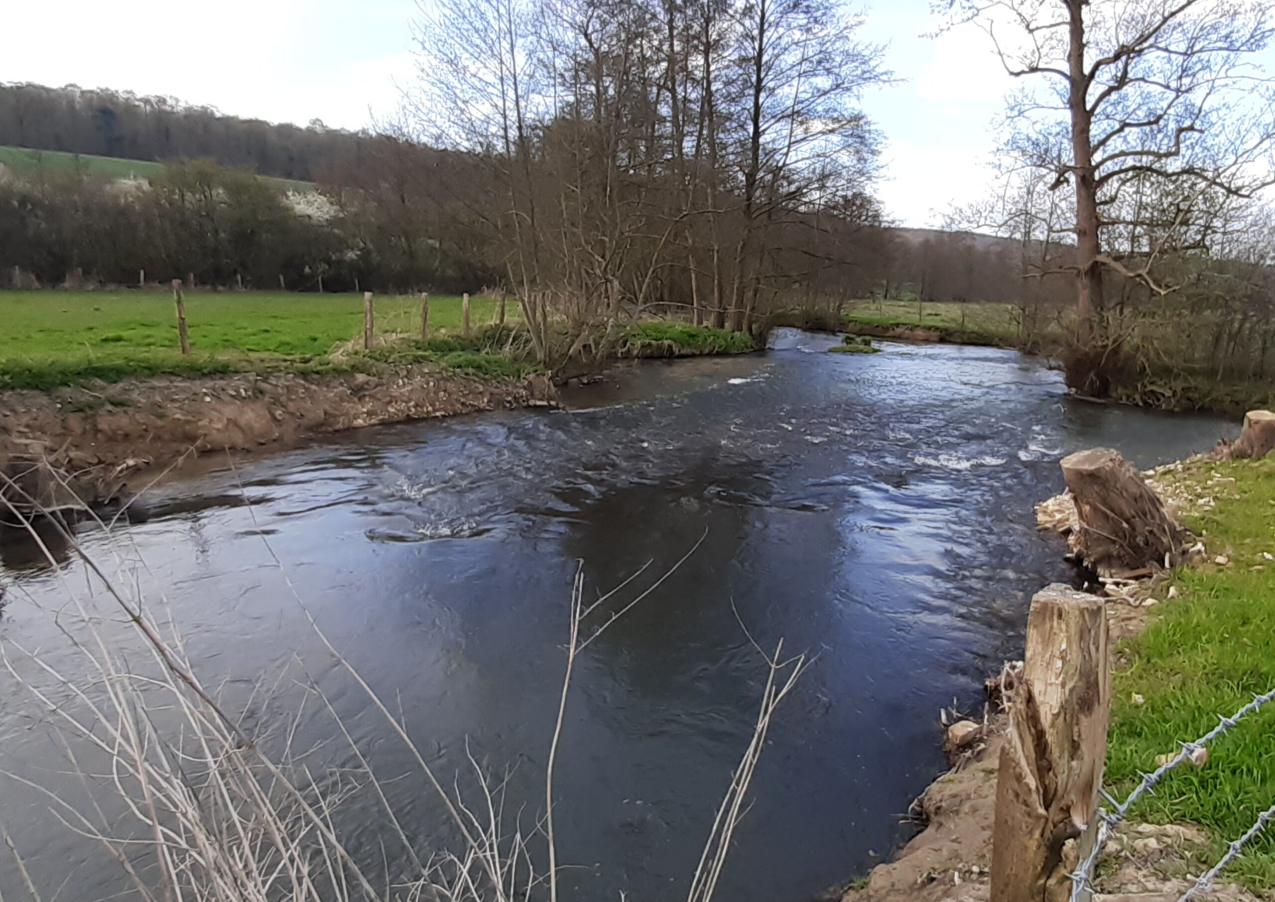 En amont (Seine-Maritime) : le cours d’eau traverse un territoire rural marqué par l’agriculture intensive (environ 50 % du territoire), mais où subsistent encore des prairies humides (30 %). Cette partie du bassin subit des étiages sévères en été et une forte réactivité aux pluies. Les habitats naturels y sont dégradés par l’érosion des sols, les anciens travaux de rectification et la présence de nombreux ouvrages hydrauliques. Résultat : la truite fario colonise toujours cette partie du bassin, mais de façon clairsemée et irrégulière.