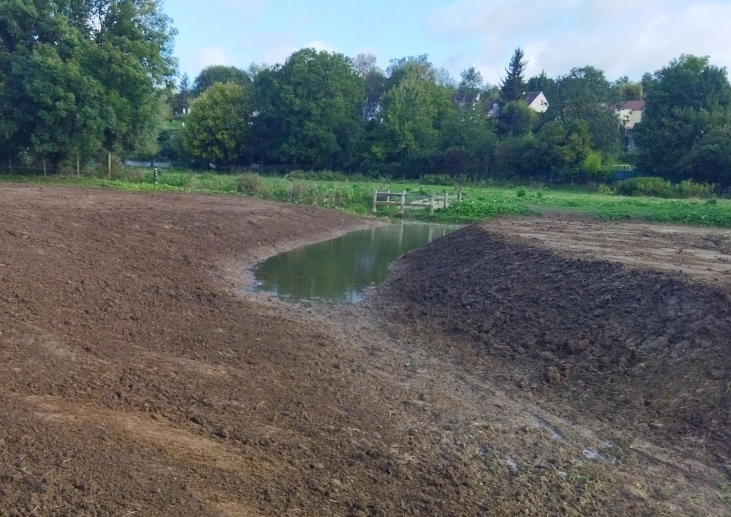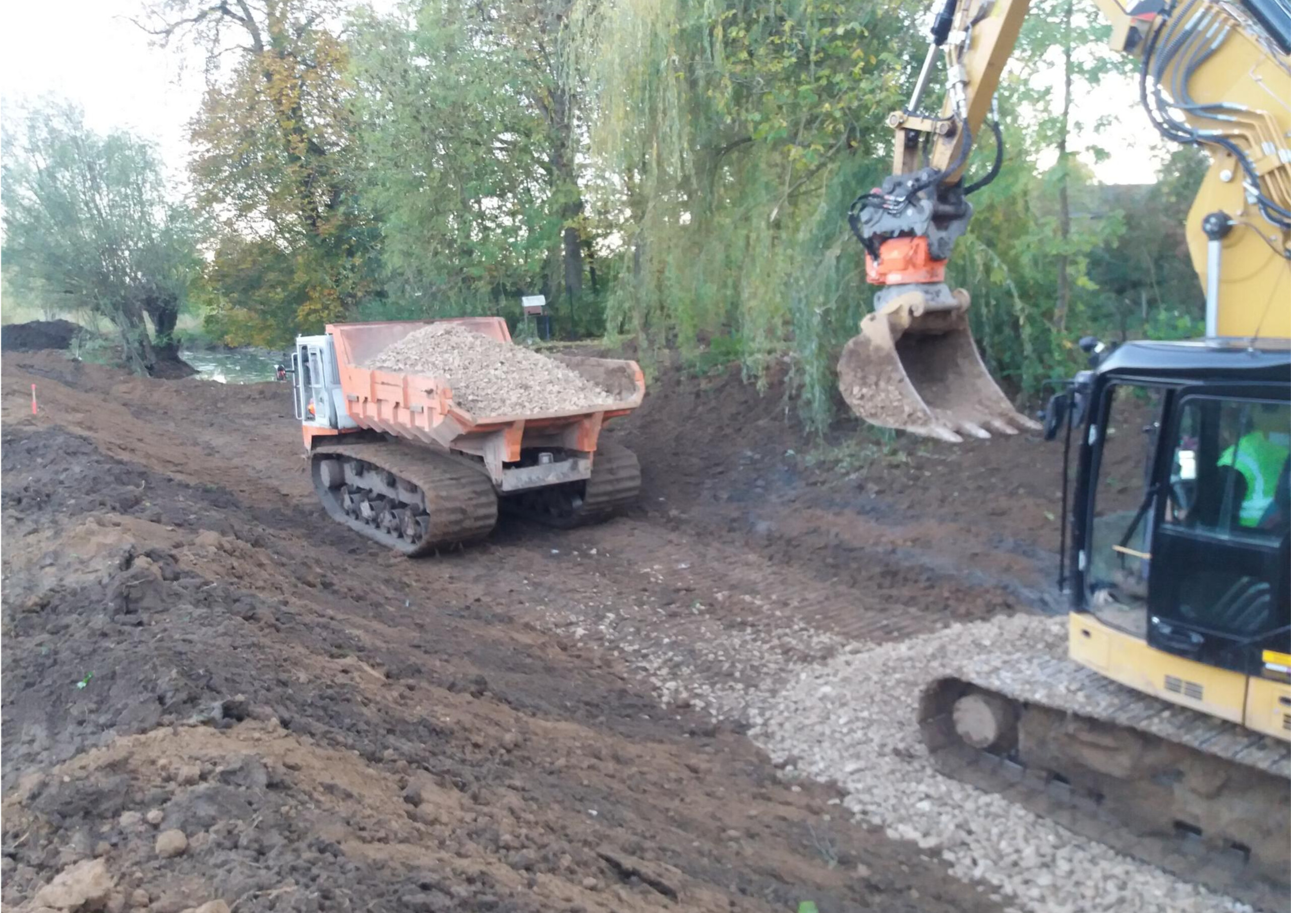 Terrassement des berges de la future frayère à brochet en rive gauche.