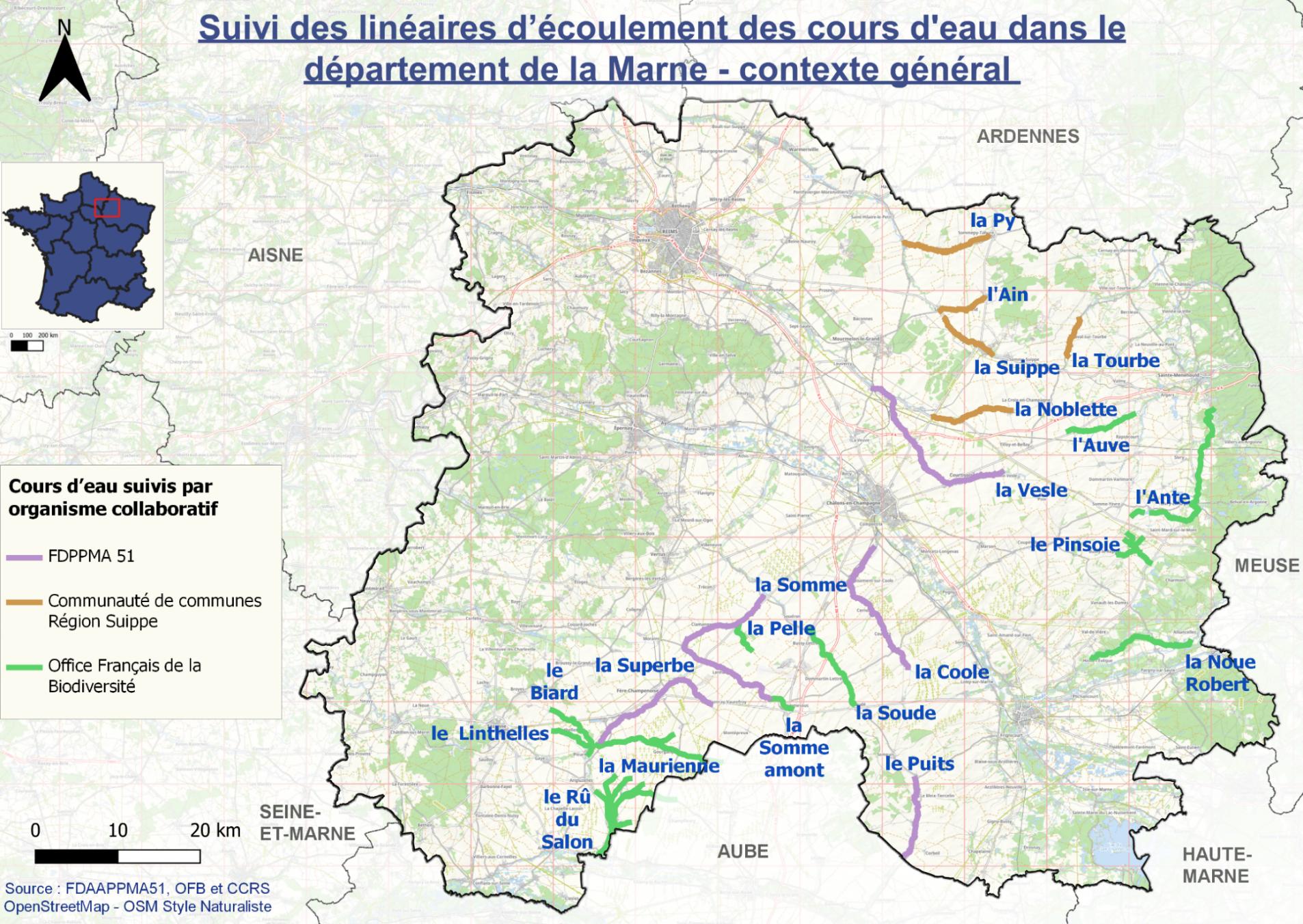 Office français de la biodiversité (OFB) : Noue Robert, Auve, Pinsoie, Ante, Maurienne, Linthelles, Biard, Rû du Salon, Pelle, Somme amont, Soude.