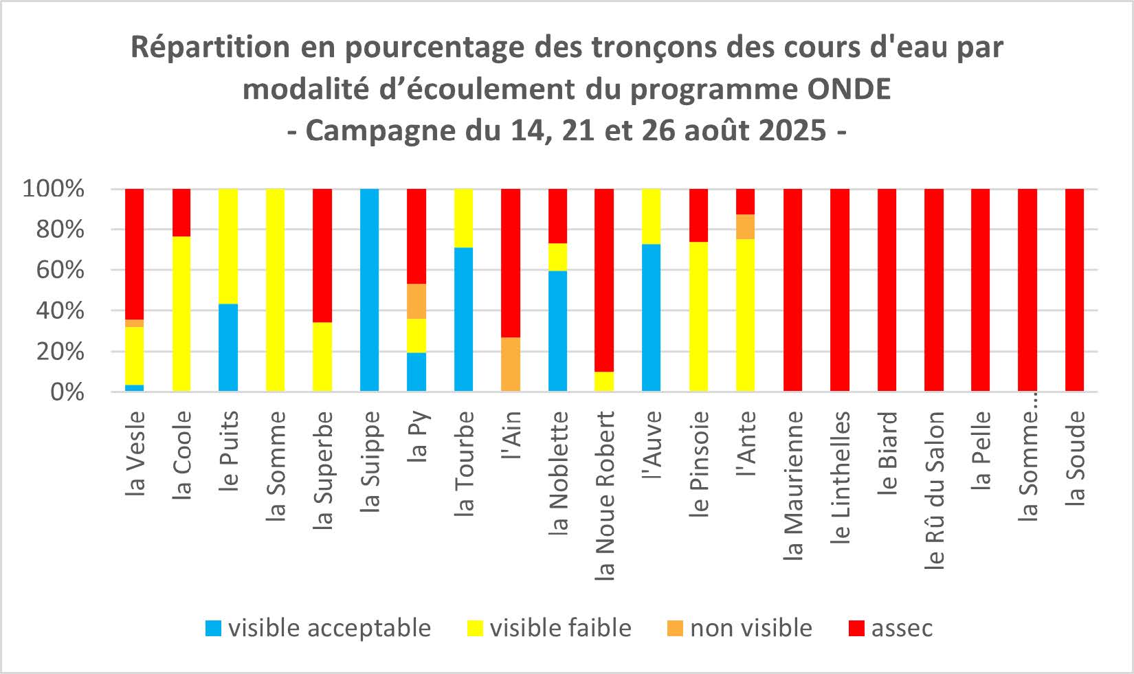 À l’inverse, certains cours d’eau comme le Puits, la Suippe, la Tourbe et l’Auve présentaient encore des tronçons avec un écoulement acceptable.